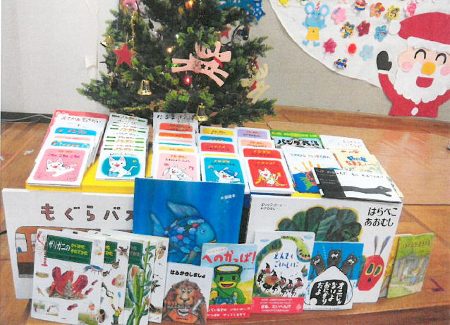 日進製作所労働組合様より頂きました寄付金を活用し、ゆうかり子ども園の園児へ絵本53冊を購入し、クリスマスプレゼントとして12月19日のクリスマス会にて披露しました。